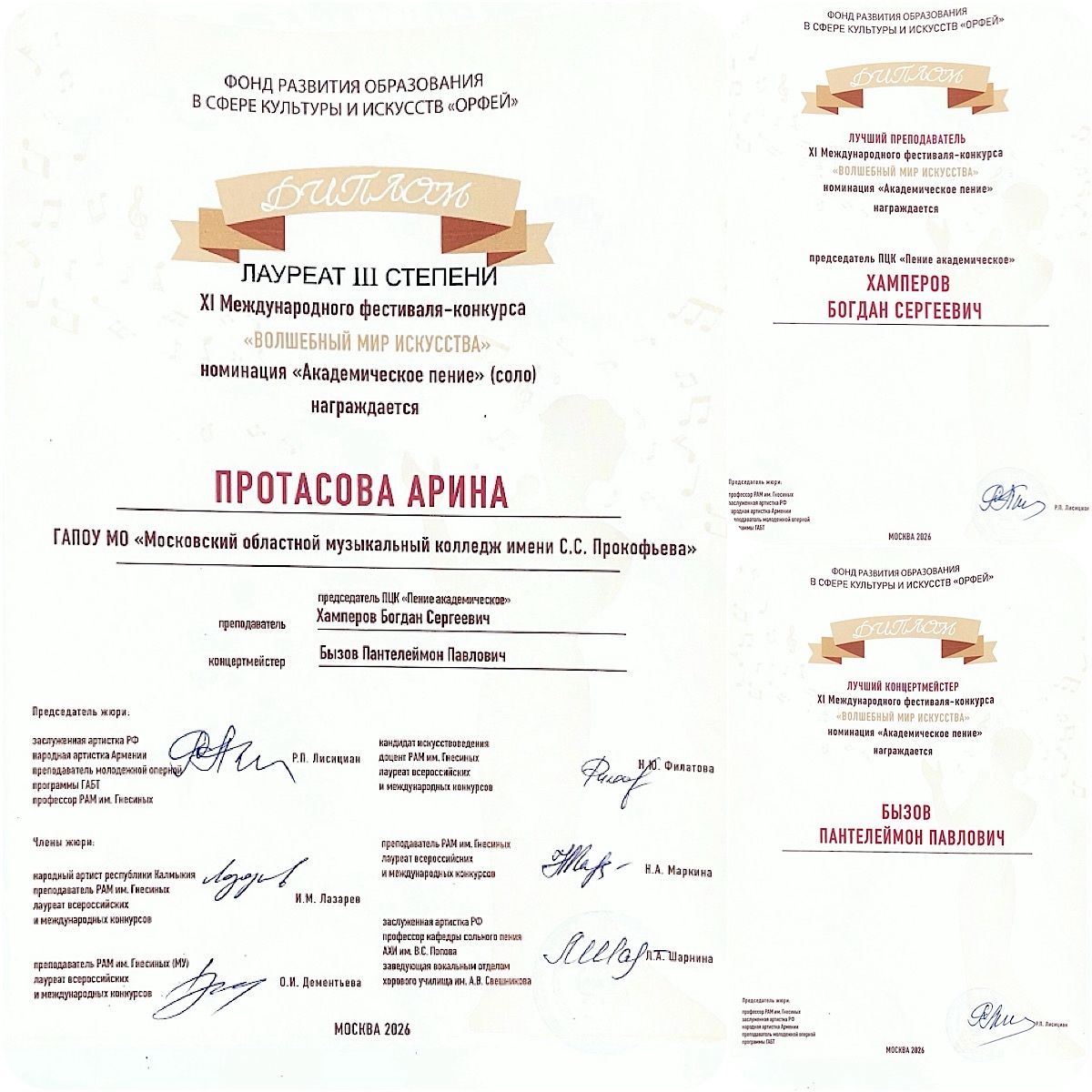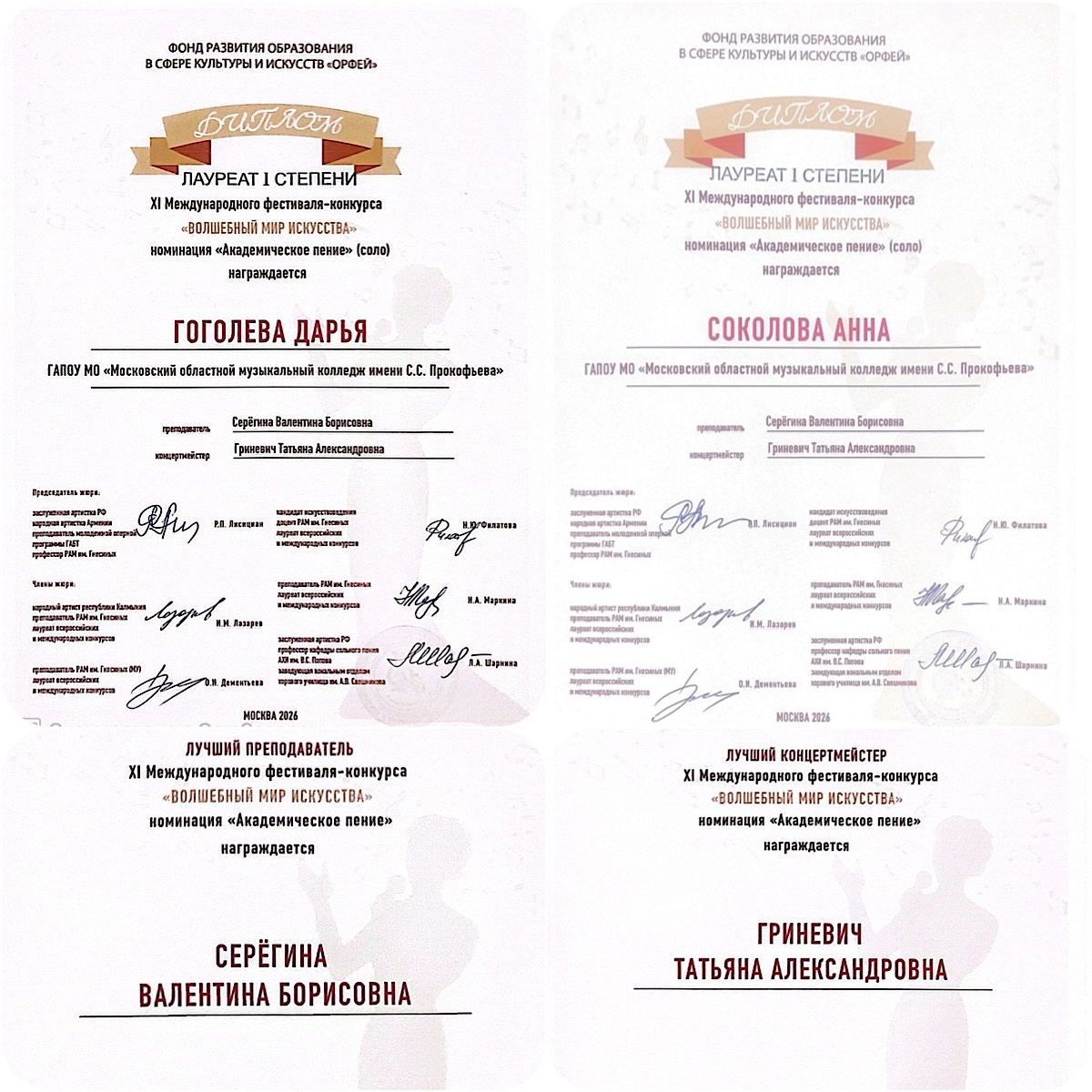 Благодарим высокопрофессиональное жюри за такую оценку наших студентов!