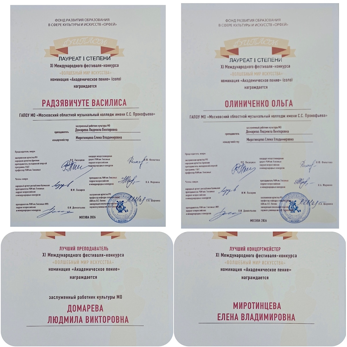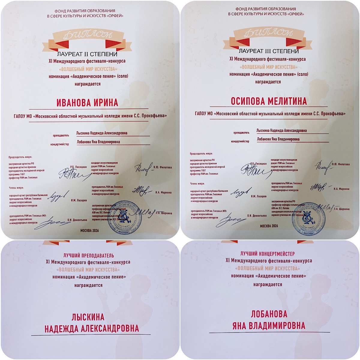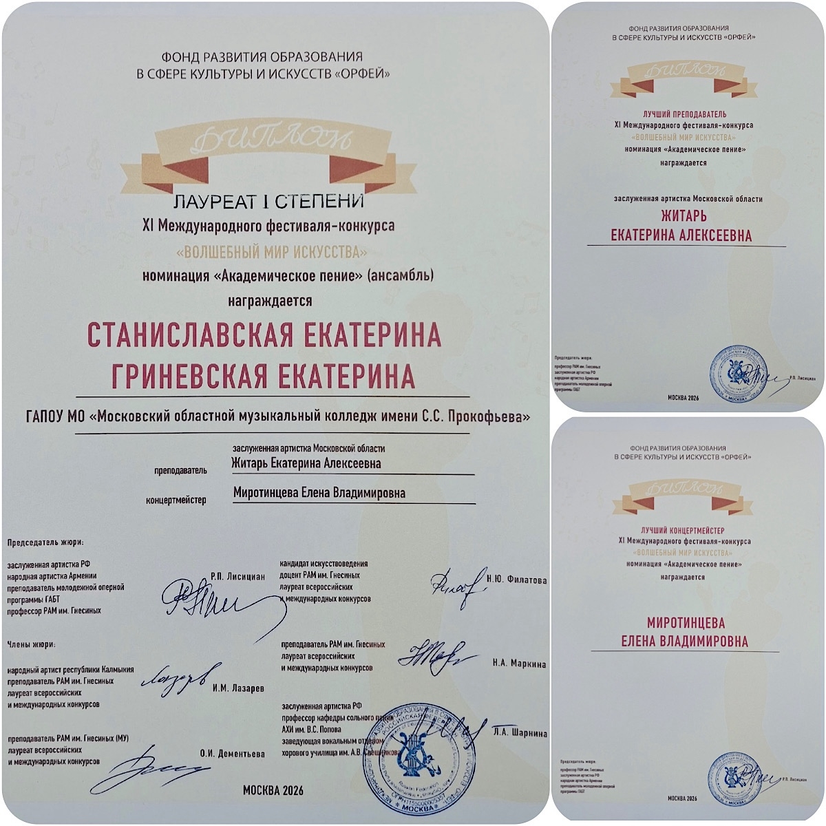 Поздравляем наших вокалистов с невероятно успешным выступлением на XI Международном фестивале-конкурсе «Волшебный мир искусства», проводимом Фондом развития образования в сфере культуры и искусств «Орфей».