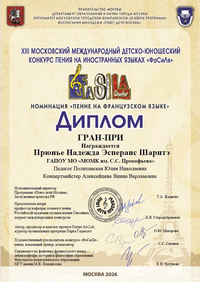 XIII Московский международный детско-юношеский конкурс пения на иностранных языках "ФаСиЛя" проходил в марте 2026 года.