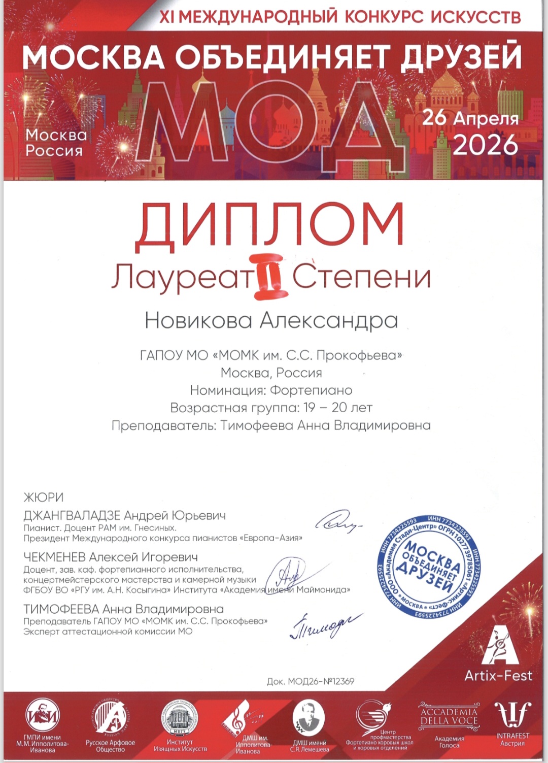 · Александра Новикова и Степан Акопян — лауреаты 2 степени.