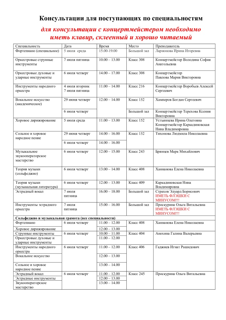 Консультации для поступающих