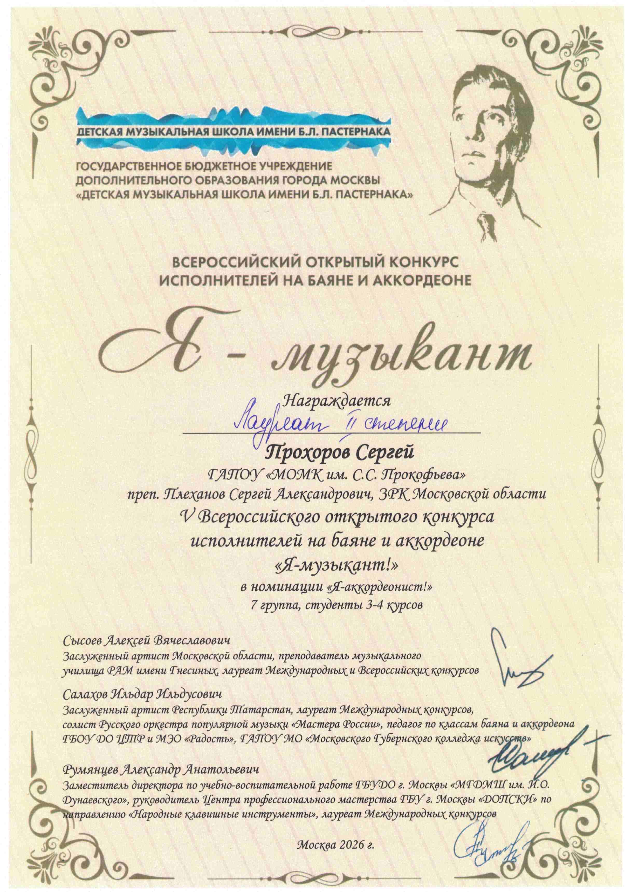 Мария Аревшатян и Сергей Прохоров были удостоены звания Лауреатов II степени.