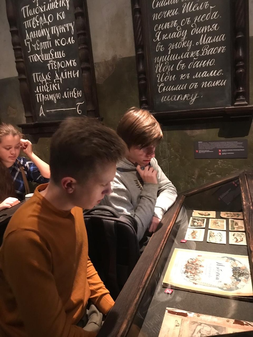 Студенты I курса в рамках интегрированного урока истории и литературы посетили Центр славянской письменности «Слово» на ВДНХ. Ребята узнали, как появилась и развивалась письменность в России и в мире, какую роль она играет в жизни разных народов и как соприкасается с устной речью. Откуда появились славянские буквы? Сначала Глаголица или Кириллица? Зачем что-то писать на колоколе - это ведь не книга? Что такое церы, и зачем в них заливали воск? А как комфортно было за партой! Привычная атмосфера. Сидя за партой, узнали о том, когда появилось школьное образование, какими были первые учебники, что такое Ликбез.