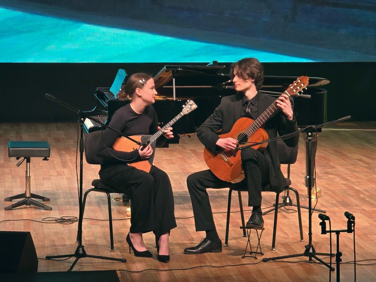 Кроме балалаечников на сцене блистали концертмейстеры Алексей Воробьёв и Ольга Байда, гуслярша Екатерина Балинова, гитаристы София Андреева и Даниил Шведов, баянист Илья Золоторёв и даже виолончелистка , выпускница колледжа Арина Петухова!